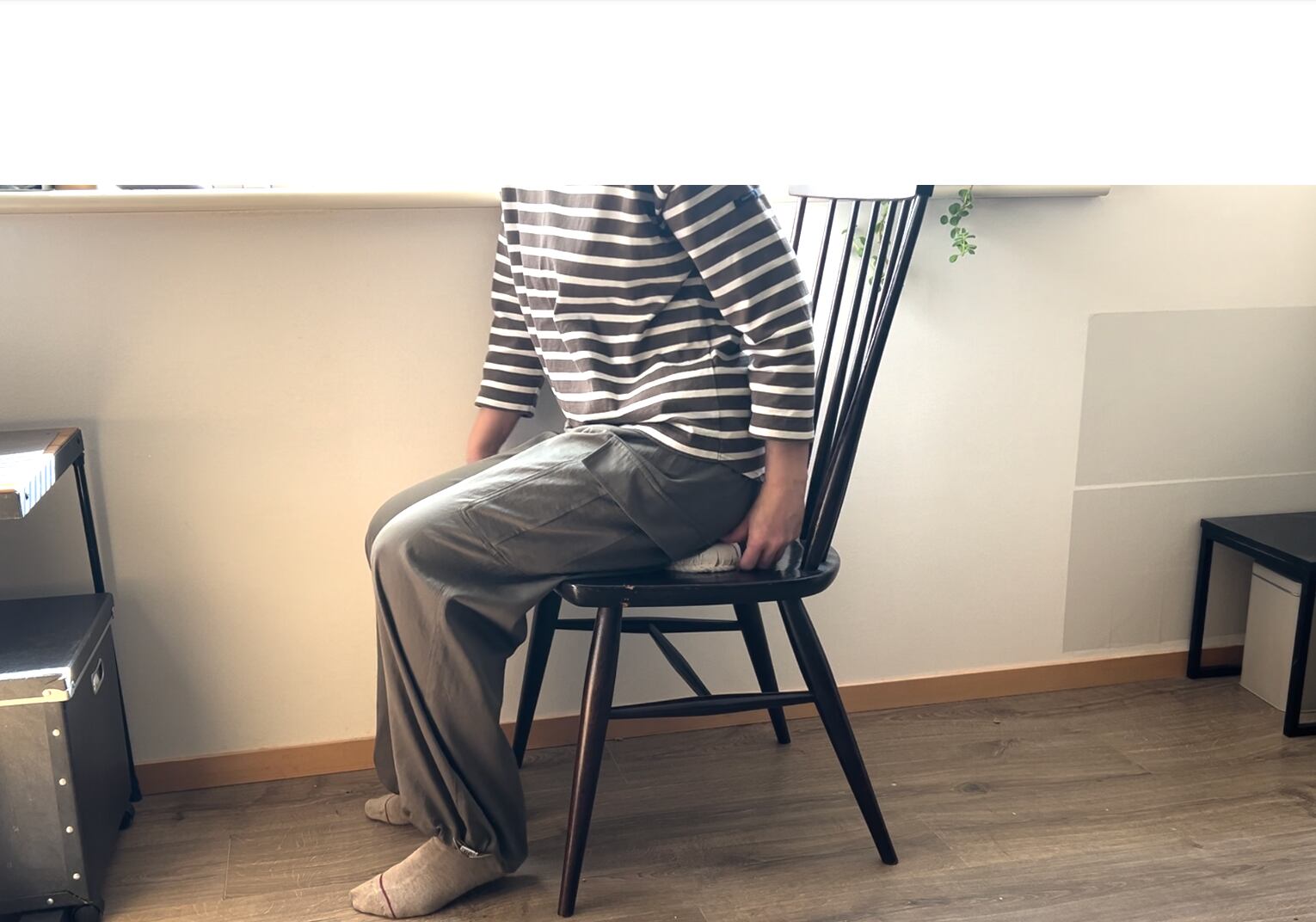 座面に手のひらを置き、その上に座って坐骨の場所を探します。